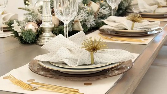 Que este Natal seja com luzes coloridas piscantes, boas gargalhadas, aromas e sabores. Que seja com muitas texturas, cores e, é claro, que não poderiam faltar as louças especiais para este dia mágico, que podem ser compostas por metais, não só de talheres mas, de adornos acobreados, prateados e dourados, com todo o charme e a elegância do espírito natalino. Mas acima de tudo, esta mesa será embelezada com pessoas felizes e iluminadas.