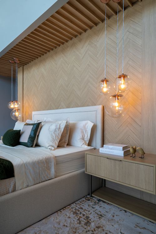 Detalhes como cortinas, tapetes e espelhos adicionam profundidade e caráter ao quarto. Eles devem ser escolhidos para complementar tanto a funcionalidade quanto a estética do ambiente, ajudando a criar uma sensação de completude.