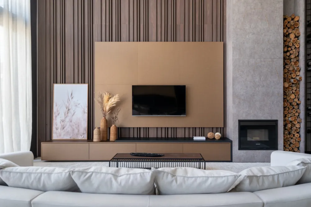 Os móveis planejados de 2025 refletem leveza e versatilidade. Mesas de centro com formas orgânicas, racks de TV suspensos e estantes finas que dividem ambientes são exemplos de peças que unem funcionalidade e design. As bordas arredondadas e a mistura de materiais, como madeira e metal, agregam modernidade aos projetos.