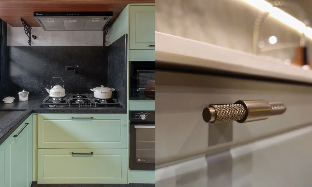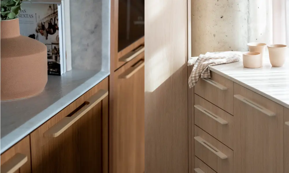 Um puxador de metal fosco pode reforçar o caráter contemporâneo de uma cozinha; já um modelo em porcelana delicada remete ao clássico, ao artesanal e à memória afetiva. E há ainda os puxadores em madeira, que aproximam o design da natureza e trazem sensação de acolhimento.