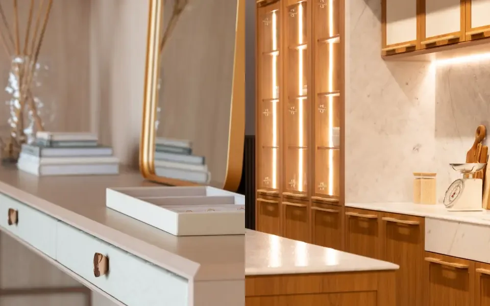 Na Criare, o design é pensado como uma extensão da identidade. E é justamente nos detalhes, como o formato de um puxador, o brilho do metal escovado ou a textura suave da madeira, que o conceito de exclusividade se revela com sutileza.